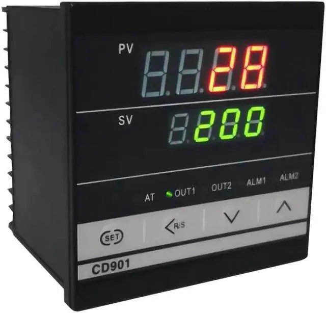 Specifications:Material: ABSInput Type: Thermocouple: K, E, S, R, J, T, B RTD: Pt100, Cu50( The User can set the input signal type according the requirement. )Input Range: 0 ~+1372C K (this is the default setting. User can set the temperature range which you wanted.) Display: Two lines, Four digits in Celsius C.Display Resolution: 1C, or 0.1C if Pt100 inputAccuracy: +/-0.5% or +/-1 unit of full input rangeSampling Period: 3 times per second Control Mode: PID, ON/OFFControl Output: Relay contact: 3A at 240 VAC. Alarm: Alarm 1 ( Upper-limit bias alarm,User can change to be other Alarm Mode.)Power Consumption: <2 WattPower Supply: 100~240V AC, 50/60Hz.Item Size: 96*96*78mm / 3.8*3.8*3.1inPackage Weight: 140g / 4.94ozPackage Size: 125*102*108mm / 4.9*4.0*4.3inNote: Wiring is subject to actual instrument wiring. Features:Dual display window,be able to display measured temperature and set temperature at the same time.Universal input, support 10 different types of thermocouples and RTD inputs by customers selected at panels,and 11 kinds of alarm mode. Uses it in Heating Control as well as for Cooling control.Auto-tune function can find the best PID parameter automatically.Displays temperature in Celsius (C)Uses it for Kiln,Furnace,Oven,Incubator temperature control.It is used in various industries to control and monitor process temperature