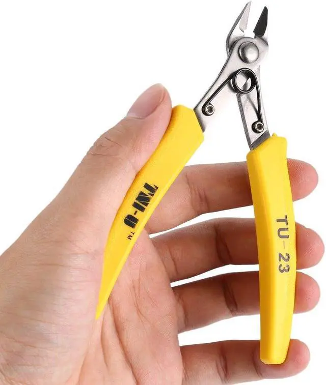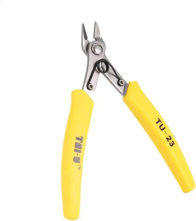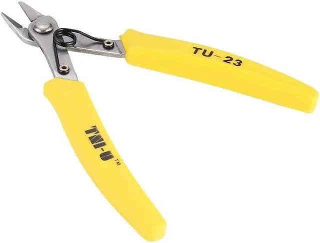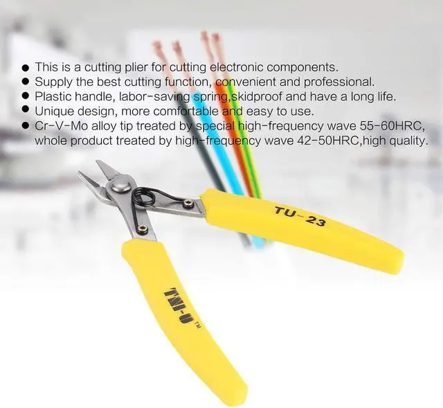 Brand:TNI-UModel:TU-23Color: YellowType:Electronic PlierHandle Style: StraightTip Material: Cr-V-Mo AlloyCutting Limit: Steel Wire : 0.4 Copper Wire: 0.6Item Size: 123 x 92 x 15mm/ 4.84x 3.62 x 0.59inItem Weight: 45g/1.6ozPackage Size: 179 x 73 x 18mm/ 7.05 x 2.87 x 0.71inPackage Weight: 60g/2.13ozBlister Package 1.This is a cutting plier for cutting electronic components.2.Supply the best cutting function, convenient and professional.3.Plastic handle, labor-saving spring,skidproof and have a long life.4.Unique design, more comfortable and easy to use.5.Cr-V-Mo alloy tip treated by special high-frequency wave 55-60HRC, whole product treated by high-frequency wave 42-50HRC,high quality.1.Portable and lightweigt,can be put into pocket.2.Cr-V-Mo alloy tip treated by special hardness, high quality.3.Widely use in factory and home.