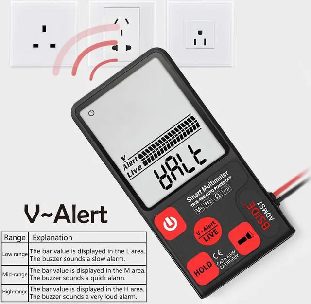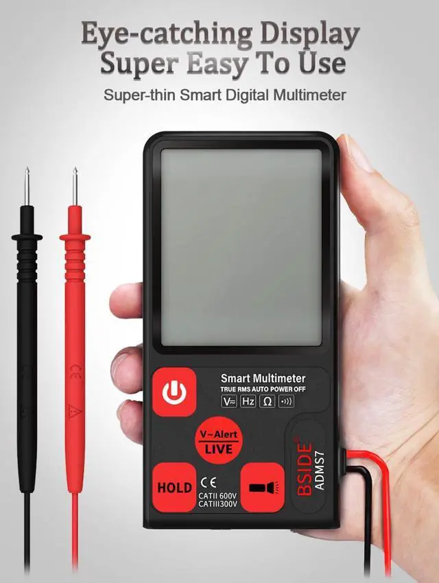 BSIDE ADMS7 Smart Digital Multimeter 3.5 '' LCD 3-Line Display Voltmeter with Analog Bargraph DMM with AVD06 Voltage Detector Kit [Phone