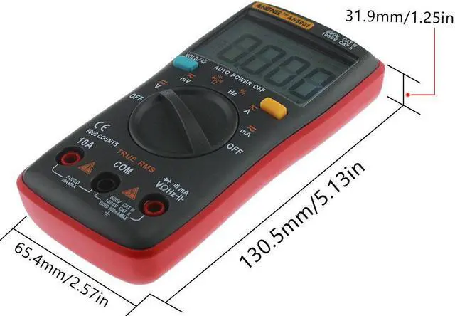 Quantity: 1set Alligator clip test wire (2pc)Color: Black / red / SilverMaterial: Silicone / metalSpecifications:Network:: negative Positive BlackCable length: 90cm 35 "/It is one of the useful tools that will brings a lot of convenience for your electronic wor.Alligator Clip Test Lead can be used in electrical or laboratory electric testing work. Features:100% brand new and high quality!It is a Auto-ranging digital multimeter using double-integral style A/D transform as the core.Can be used to measures AC/DC voltage, AC/DC current,resistance,capacitance,diode and continuity testing,temperature,frequency and etc.The products are battery powered.They are characterized by stable function and high reliability, with the features of overload protection and LCD display for clear reading,are an ideal tools for lav,factory,radio fans and family use. Specifications:Frequency: 5/50/500/5k/50k/500k/5M/10M (+ 0.1+3)Capacitance: 10nF (+ 5.0+20), 100nF/1uF/10uF/100uF (+ 2.0%+5), 1000uF/10000uF (+ 5.0%+5) ()DC voltage: 600mV (+ 1.0%+10), 6V/60V/600V/1000V (+ 0.5%+3)AC voltage: 600mV (+ 3.0%+3), 6V/60V/600V/750V (+ 1.0%+3)DC current 600uA/6000uA (+ 1.5%+3), 60mA/600mA (+ 1.5%+3), 10A (+ 1.5%+3)AC current 600uA/6000uA (+ 1.5%+3), 60mA/600mA (+ 1.5%+3), 10A (+ 1.5%+3)Resistance: 600 (+ 0.5%+3), 6K/60K/600K/6M (+ 0.5%+2), 60M (+ 1.5%+3)Measurement methods: double integral A/D converterShare ratio: 1% to 99% (+ 1%)Ultra range display: OLWorking environment: 0~40 C, relative humidity < 80%Power supply voltage: 3V (AAA x2 Pcs 1.5V) (Battery not included)Color: Blue & grayWeight:200gSize:130*65*30mmPackage size:140*80*40mm