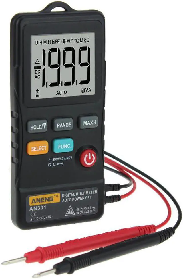 Examine the case before you use the product. Look for cracks or missing plastic. Carefully look at the insulation around the terminals.The measurement must be made within the allowable measuring range.Do not use the product around explosive gas, vapor, or in damp or wet environments.When the voltage to be measured exceeds 36V DC or 25V AC, the operator shall be careful enough to avoid electric shock.Misuse of mode or range can lead to hazards, be cautious. OL will be shown on the display when the input is out of range.Low level of a battery will result in incorrect readings. Change the batteries when battery level is low. Do not make measurements when the battery door is not properly placed. IntroductionThis product is a battery-powered, auto-ranging, true RMS digital multimeter with a 1999 counts LCD display.Safety InformationTo avoid possible electrical shock, fire, or personal injury, please read all safety information before you use the product. Please use the product only as specified, or the protection supplied by the product can be compromised.