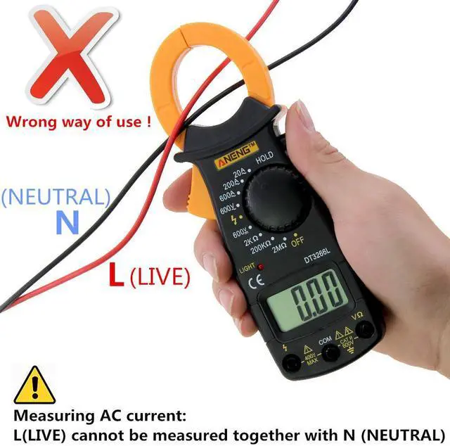 Specification: Measuring voltage range: 600 (V)Measuring current range: 400 (A)Measuring resistance range: 2M()Item size:178x54x27mm Features:1.Measuring current, resistance, DCV, ACV, diode and FireWire2.The trigger adopted with anti-slide design, convenient and simple3.LCD screen, digital display, reading accuracy and speediness4.Stable performance, lower power consumption, higher reliability and safety5.AC and DC current brake reading, high accuracy, high efficiency and fast read.Descriptions:1.The new streamlined fuselage, developed according to the operation practice, conforms to the ergonomic design and is more comfortable.2.Full range overload protection, anti burning.