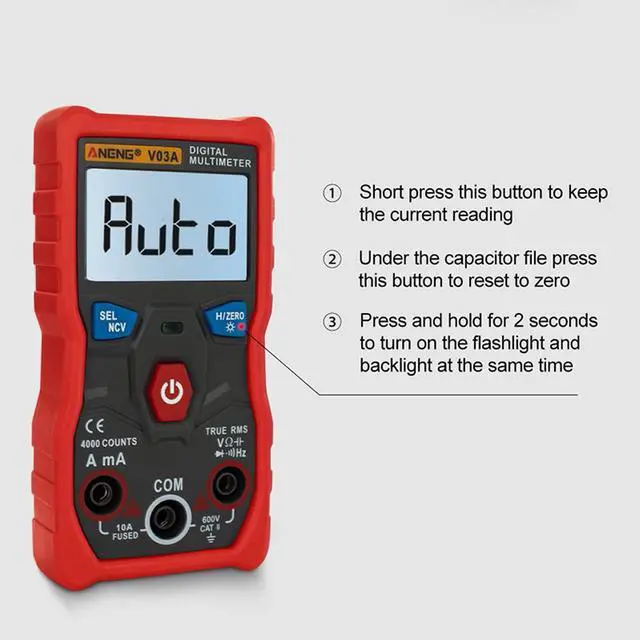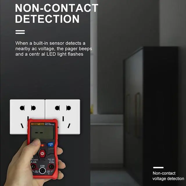 ture vaild valuesNine function: voltage, resistance, current, diode, capacitance, NVC, backlight, on and off, frequencyDesigned with a strong light on the back for easy night work and dark working conditionsHD backlight screen, designed with a backlit screen for night work and dark working conditionsSmall body more portableNon-contact detection, when a bulit -in sensor detects a nearby ac voltage, the pager beeps and a central LED light flashesGroove fit, effective anti-fall silicone material, protect hardware from damageCircuit board bulit-in safety tube with overload protectionThe measurement method is more convenient and fasterThe new automatic range is easy to use without professionals