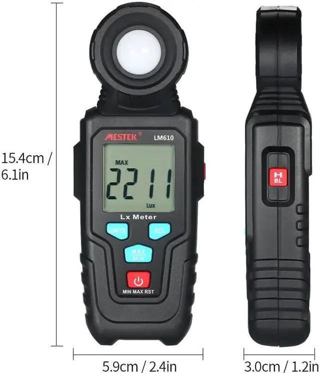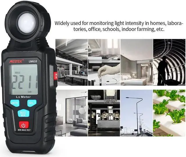 Features: Mini lux meter with stable, high accuracy, safe and reliable measurement. Wide measurement range 0-200, 000 lux with switchable measuring unit of Lux or FC and or. MAX / MIN / Data Hold functions, automatic measurement, temperature measurement, low battery indication. LCD display with backlight for easy operation in darkness. Compact size and light weight so you can hold and carry it conveniently. Widely used for monitoring light intensity in homes, laboratories, office, schools, indoor farming, etc.