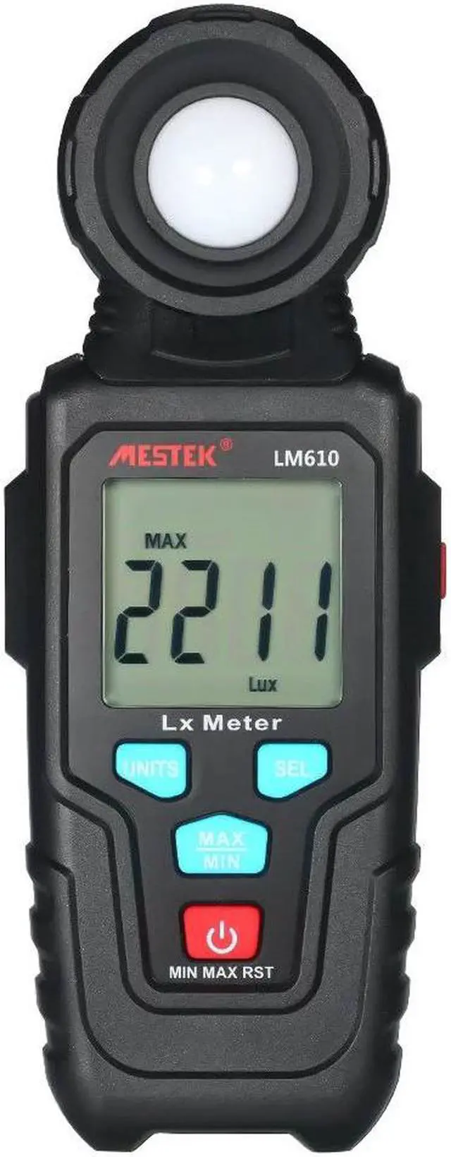 MESTEK LM610 Mini Digital Lux Meter LCD Display Handheld Auto Range Illuminometer Luminometer Photometer Luxmeter Light Meter 0-200000 Lux with Max/Min/Data Hold Mode