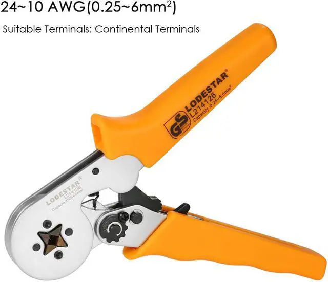 Features: Rugged design and anti-rust coating, high durability and labor-saving. Ratchet mechanism device provides comfortable operation and perfect crimping effects. Suitable for continental terminals from 24 to 10 AWG( 0.25 ~6mm2; ). With adjustment screw, you can adjust the strength of crimping. Can adjust the crimping size automatically, thus crimping the terminals into hexagon. Made of steel material for long service life. Just hold the handle and operate it once to successfully crimp the terminals.