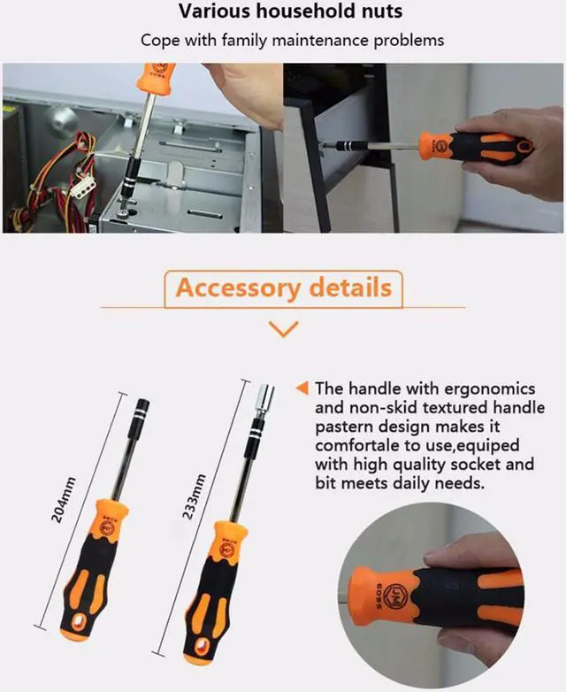 JAKEMY JM-6095 Portable Chrome Vanadium Screwdriver Tool Box Set DIY Hand Tool for Home Electronics Repair 9PCS inter Hexagon Sockets (white color) M 5.0, M 6.0, M 7.0, M 8.0, M 9.0, M10, M11, M12, M1320PCS 6.3 mm Chromium plated screwdriver bits (black color)