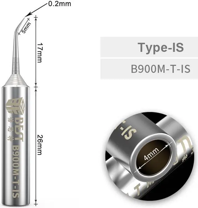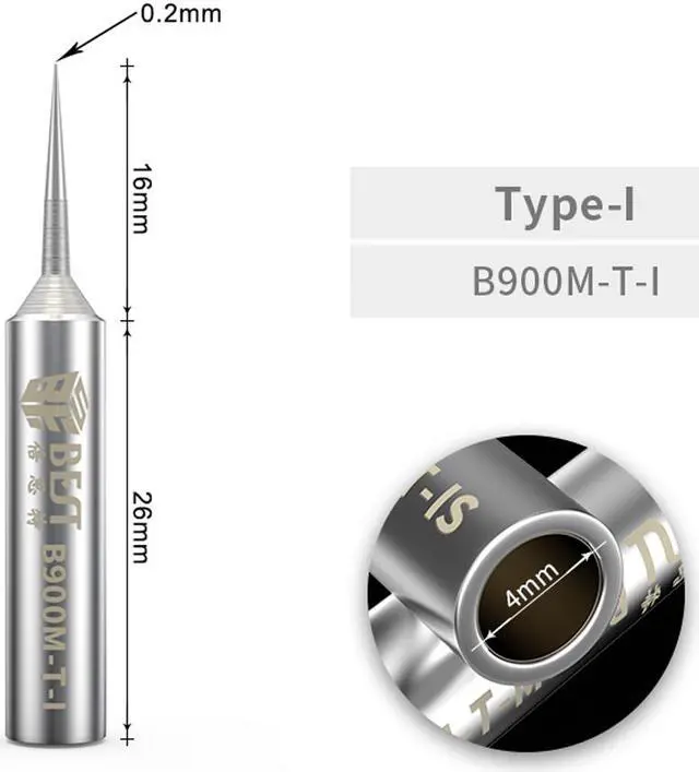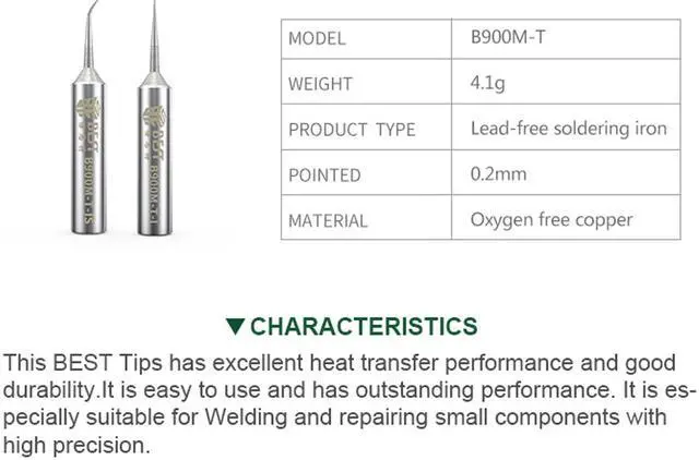 BEST B900M-T-I/IS Soldering Iron Tips Oxygen-free Copper 0.2 mm Fly Line Welding Tips Solder Iron Sting For Hakko 936/937 BGA DIY Brand: BEST Model: B900M-T Weight: 4.1 g Tip size: 0.2 mm