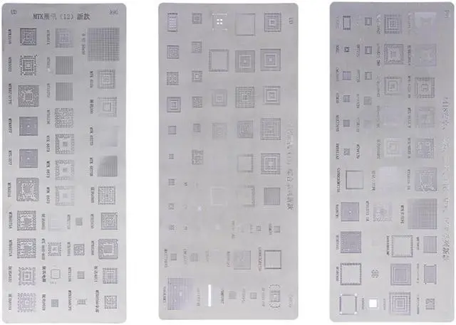 3pcs Universal BGA Stencils Directly Heated BGA Reballing Stencils Kit For MTK Samsung HTC Huawei Android Specification This 3 pieces bga stencils tin plate was for samsung HUAWEI Android MTK series chip IC reballing repair