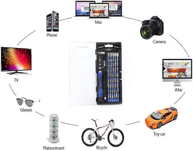 BST-8932 60 in 1 Screwdriver Set Precision Magnetic Screwdriver Sets for Computer Laptop Mobile Phone Tablet PC Repairing Tools Kit Multi-function Precision Screwdriver Set. Labor-saving spinning cap on top, simple and easy to use. Ergonomic non-slip handle, comfortable grip. Magnetic bit, will not afraid to lose screws. Professional tools make easier to disassemble, compact design. High hardness and good toughness, non-slip handle. Complete specifications of the high-quality precision batch head, can adapt to different areas of operation. Suitable for most mobile phones, tablets, laptops, cameras, watches.