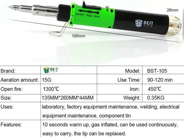 BEST-105 10 in 1 Butane Gas Soldering Iron Set Welding Kit Torch