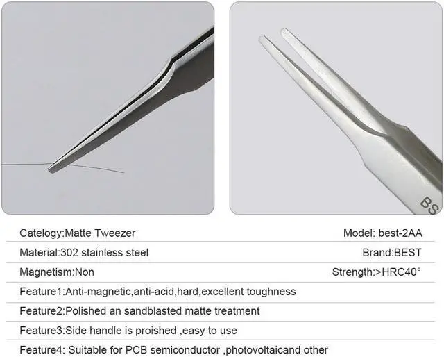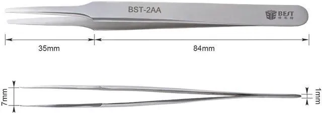 BST-2AA Portable Precision Flat Mouth Anti-magnetic Tweezers Heat-Resistant PCB Repair Tool