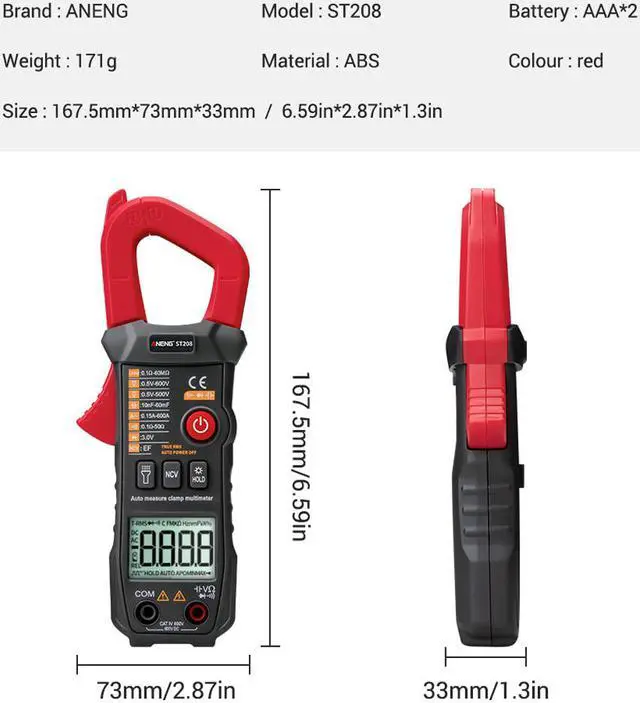3. Capacitance (C) Accuracy Range 6000counts Resolution 10nF 3.5 %+20 10pF 100nF 100pF 1uF 1nF 10uF 10nF 100uF 100nF 1mF 1uF 10mF 10uF 60mF 5%+3 100uF 4. AC current Accuracy Range 6000counts Resolution 60A 2%+30 0.001A 600A 0.01A General Characteristics1.