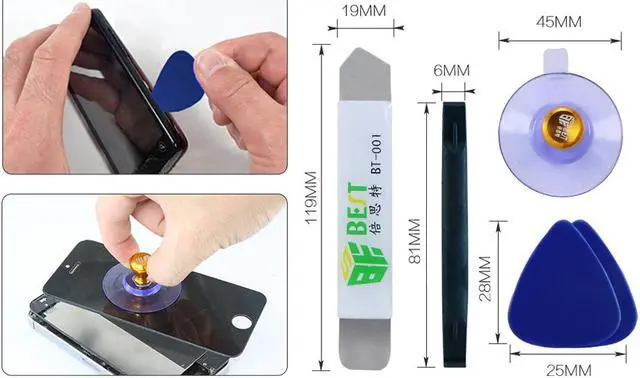 Application: iPhone, iPad, Samsung... etc Easy to use and handle. Precision screwdrivers, non-slip design. Plastic spudger will open your device without damage. Suction cup is used to open LCD screen. Rotary phone repair stand holder. An extra helping hand for DIY repair. It enables LCD screen to stand, free your hands. Avoid mis-operation to damage the flex cable. Suitable for iPhone iPad and other brand mobile phones.