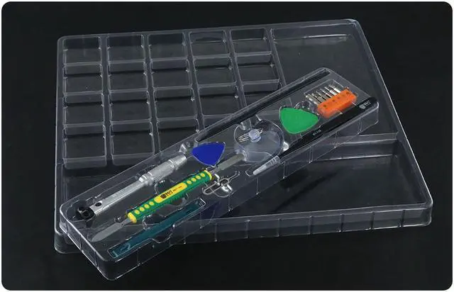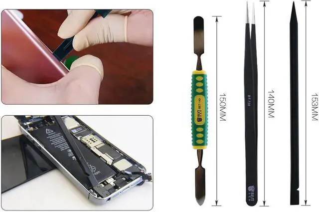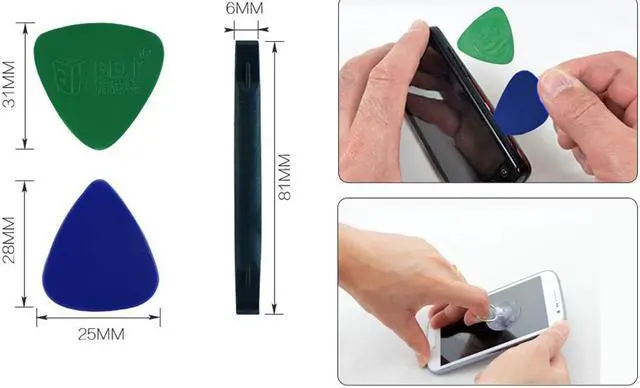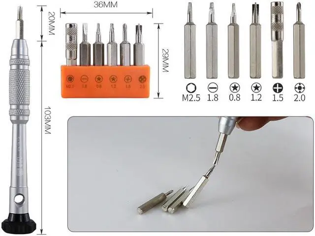Socket M: 2.5 PH2 middle plate 2. Handle, parts tray, metal pry bar, plastic opening tool, sim eject tool, suction cup, triangle pick, ESD tweezers, Spudger. 1. This phone repair tool kit is suitable for disassemble iPhone 4/4s/5/5s/6/6s/6+, Sumsang and other phone, laptop ect 2. Professional tool, the parts tray can hold the small parts, which is very practical.