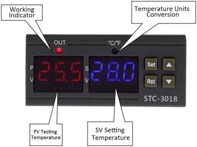 Features: High accuracy and wide measuring range. Stable performance, supports long time use. With large and clear display for better readability. Applied to plant oil stove, hatching device, refrigerator and so on.