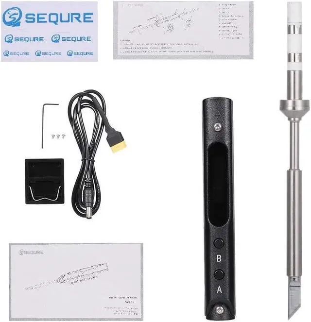 Soldering Iron Controller: SQ-001 is based on 304 stainless steel nested ABS + PC shell, Integrated special power interface, Safety circuit design, Antistatic structure. *The perfect combination of embedded STM32 processor, dual temperature sensor, and acceleration transmitter. *Make SQ-001 realize intelligent temperature control between 100-400 degrees, more stable temperature, instantaneous temperature rise, automatic sleep, over-temperature alarm, and other functions. *Mini