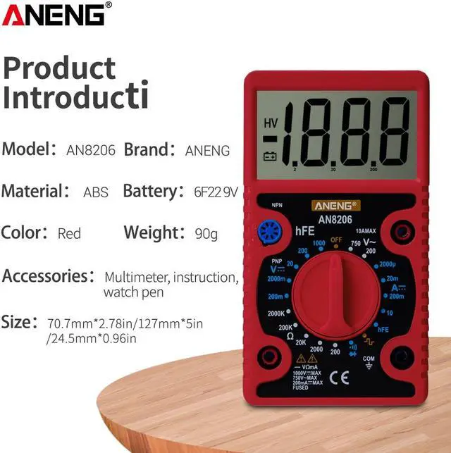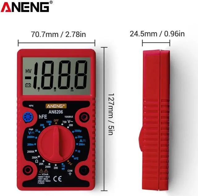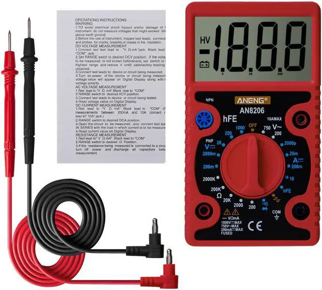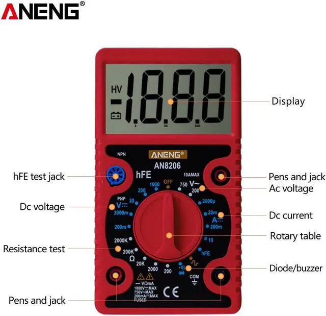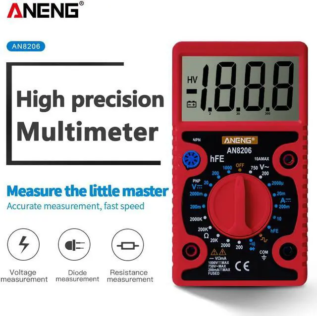 ANENG AN8206 Large Screen Digital Multimeter with Square Wave Output Voltage Current Continuity Measurement hEF Measurement -