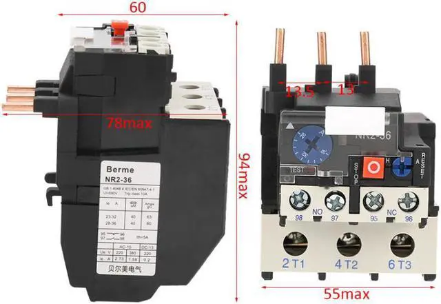 234g/ 8.3 oz Features: This thermal relay can be used in the circuit of 50Hz or 60Hz, rated insulation voltage 690V, rated current 28-36AUsed for protecting the phase break when the electric motor is overload. The relay has different mechanism and temperature compensationWith phase break protection, manual and automatic reset, temperature compensation, trip indication, test button, stop button