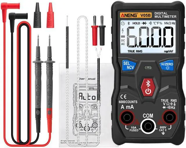 ANENG V05B Digital Bluetooth Multimeter 6000 Counts Professional Analog Multimeter AC/DC Currents Voltage Mini Testers True RMS Multimetro - Black