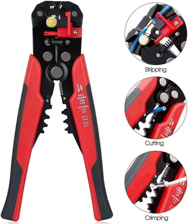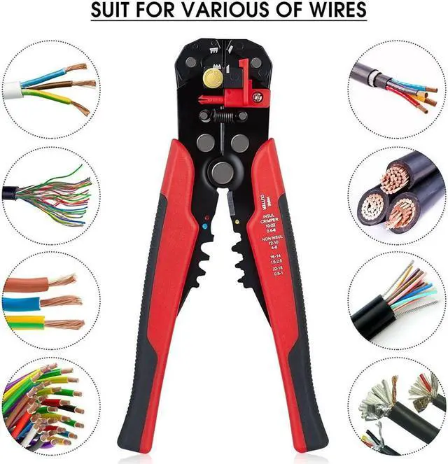 4. For non-insulated terminals 12-10AWG( 4.0 - 6.0 mm2), 16-14AWG( 1.5 - 2.5 mm2), 22-18AWG( 0.5 -1mm2). For auto ignition terminals 7-8mm. For striping the plastic or rubber insulation of the single, multiple cables and wires of 0.5 -6mm. For cutting and stripping wire and cable. For crimping insulated and non-insulated terminals. Touch grips provide maximum comfort and reduced hand fatigue.