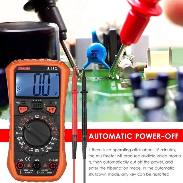Auto Power-off: the meter will automatic shut down if there is no operation in 15 minutes. and the backlight/flashlight will shut off in 15s/30s of no operating.