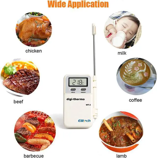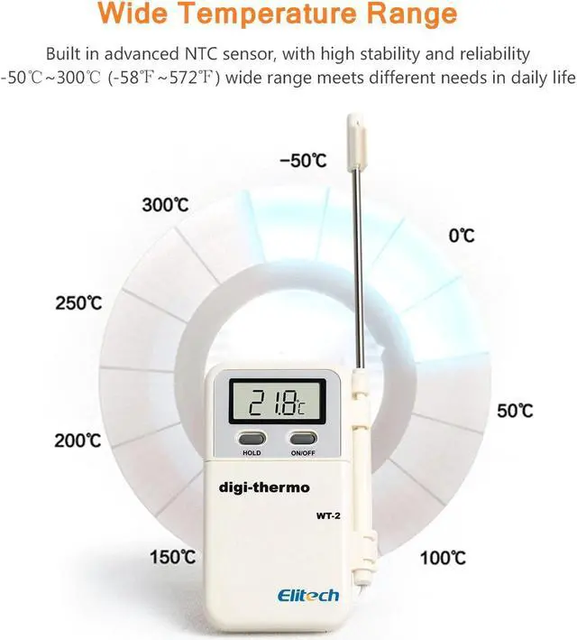 Features: Digital food thermometer with probe, perfect helper for cooking, baking and grilling. -50~300 (-58~572) wide temperature range, high accuracy. Instant read, making you know the real-time temperature change during the following processes, such as cake/ yogurt/ soup making, water/ oil temperature measuring and more. Digital LCD screen, instant reading, data lock function, or selectable, more convenient and humanized.
