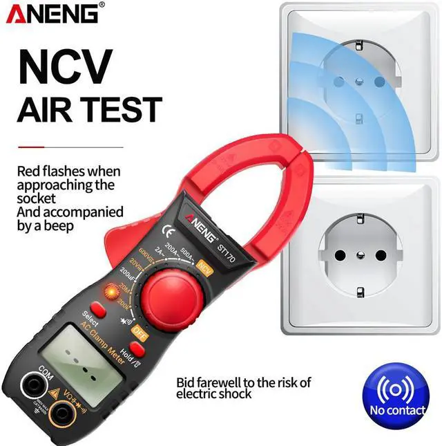 ST170 Portable Digital Clamp Meter DC/AC Current Multimeter Ammeter Voltage Tester Diode Current Capacitance NCV Ohm Test - Red(no box)