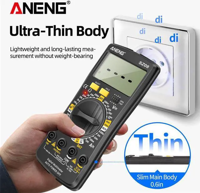 ANENG SZ08 Digital Multimeter Ultra-thin Storage Professional Multimetro Auto Voltmeter AC DC 220V Resistance Handhold Testers & Combination Line - Black