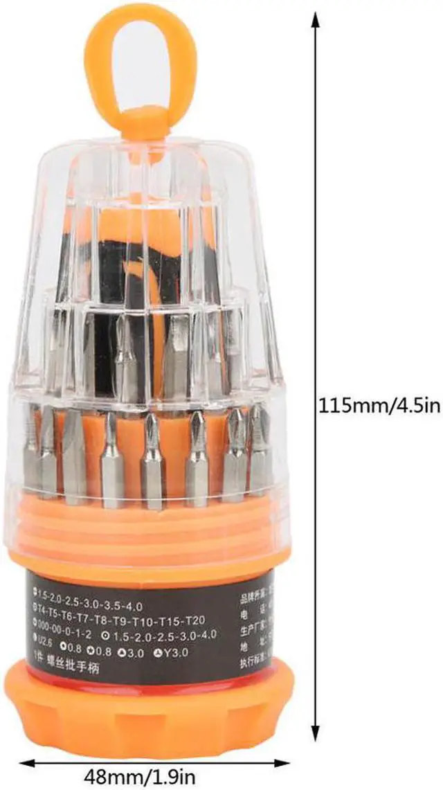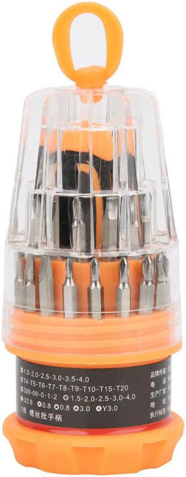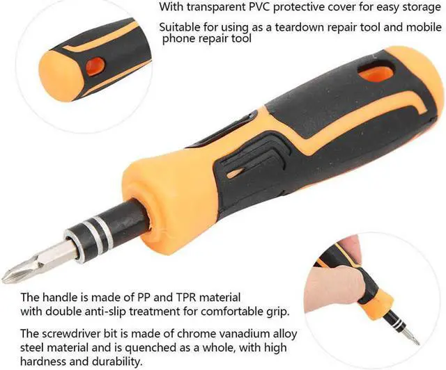 Feature: 1. The handle is made of PP and TPR material with double anti-slip treatment for comfortable grip. 2. The screwdriver bit is made of alloy steel material and is quenched as a whole, with high hardness and durability. 3. With transparent PVC protective cover for easy storage4. Suitable for using as a teardown repair tool and mobile phone repair tool5. Professional design, it is a good repairing tool