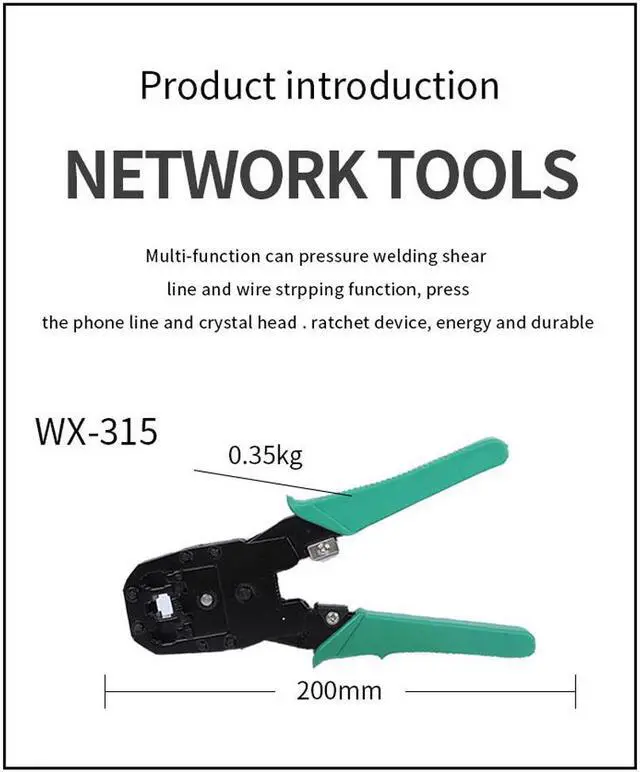 RJ45 11.68 mmLength: 200mm 1. In both directions can be adjusted, different type of coaxial cable coonector crimping and separation, compared with traditional2. Hexagonal crimping tools, more convenient and comfortable; 3. Ergonomic design of the handle