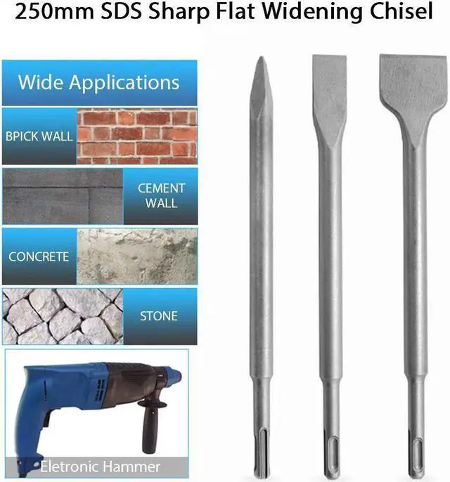 Set of 5PCS 250mm SDS S-harp Flat Widening Chisel for Brick Stone Concrete