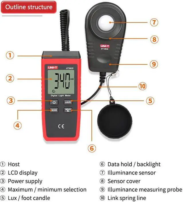 UNI-T UT383S Light Meter 200, 000 LUX Digital Luxmeter Luminance Lux Fc Test Max Min Illuminometers Photometer UNI-T UT383S Light Meter 200, 000 LUX Digital Luxmeter Luminance Lux Fc Test Max Min Illuminometers Photometer