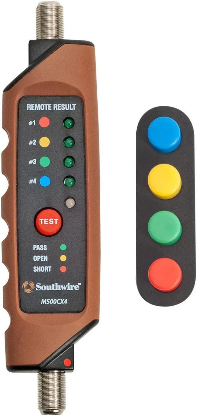 Southwire m500cx4 coax continuity tester/mapper easy-to-understand LED display. Test patch cables or installed cables. Identify up to four coax cable remote locations - includes 4 color-coded id remotes.