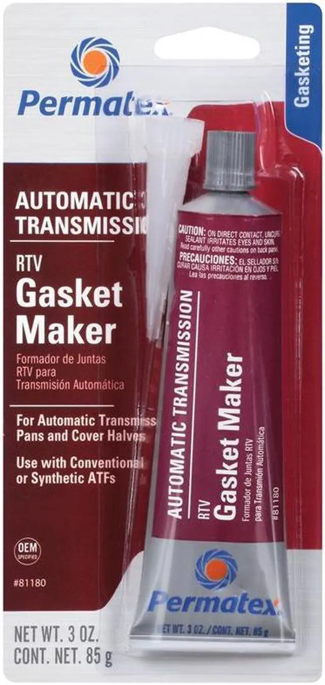 PERMATEX 81180 PERMATEX 81180 - AUTOMATIC TRANSMISSION RTV GASKET MAKERPermatex 81180 - Automatic Transmission RTV Gasket Maker Sold IndividuallyOEM Specified. Developed With U. S. Automotive OEMs And Complies With Extended Warranty Requirements. It Resists Aging, Weathering And Thermal Cycling Without Hardening, Shrinking Or Cracking. Benefits Include Improved Transmission Oil Resistance, Good Adhesion While Retaining Flexibility, Sensor-Safe, Noncorrosive And Can Be Used As A Gasket Maker Or Dressing. Nonflammable, Nontoxic, Low Odor.