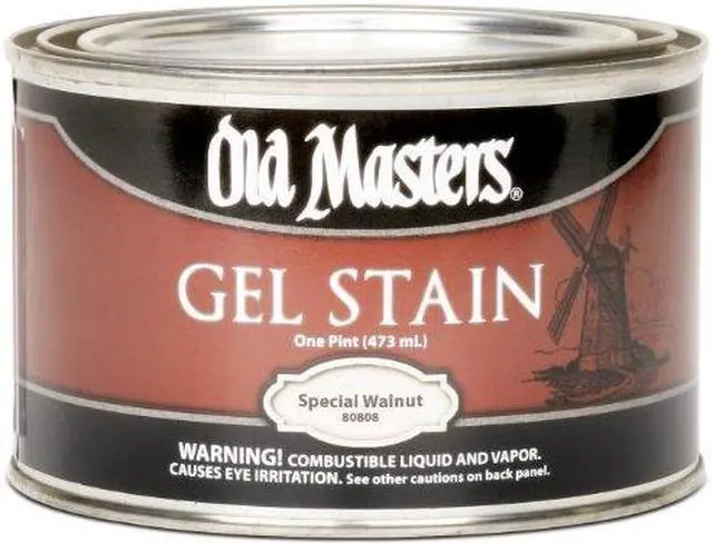 Old Masters Gel Stain, Oil Based, Series: 80808, 808 Special Walnut, Clear, 1 pt Capacity, Can Packing, Vehicles: Alkyd, 1000 - 1200 sq-ft/gal Coverage, 102 deg F Flash Point, 550 g/l VOC, Applicable