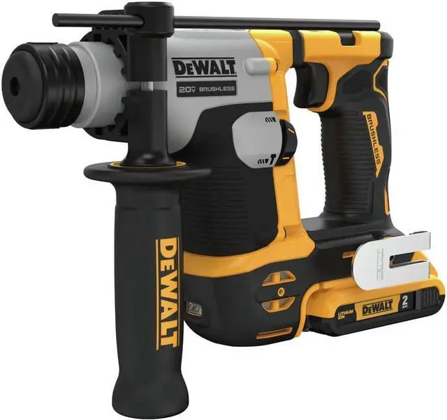 The 20V MAX* Brushless 5/8 in. Rotary Hammer is a high performance drill powered by a DEWALT brushless motor and a durable German engineered mechanism, delivering 1.4 Joules of impact energy. The lightweight and compact design makes this tool ideal for rod hanging, concrete forming, cable tray and strut mounting, clip and bracket mounting, and railing mounting. It is part of the PERFORM and PROTECT product line, integrated with the SHOCKS ACTIVE VIBRATION CONTROL System and becomes OSHA Table 1 Compliant when used with the DWH200D shroud and DWH161D1 dust extractor.