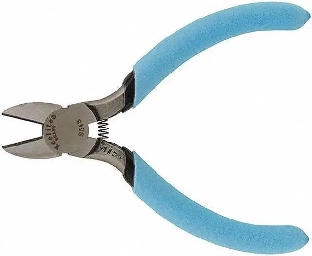 Diagonal Cutting Plier, Plier Type Diagonal Cutting Pliers, Cut Profile Standard, ESD-Safe Yes, Insulated No, Non-Sparking No, Overall Length 4 1/2 in, Jaw Length 5/8 in, Jaw Width 5/8 in, Maximum Wire Cutting Gauge 18 AWG, Voltage Rating Not Rated, Tether Ready No, Additional Tool Functions Wire Cutter, Blade Material Steel, Cutter Length 5/8 in, Features Dual Leaf Springs, Oval Head. This item has been restricted from sale in the following state (s): []