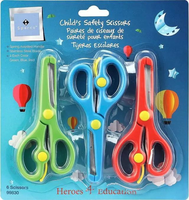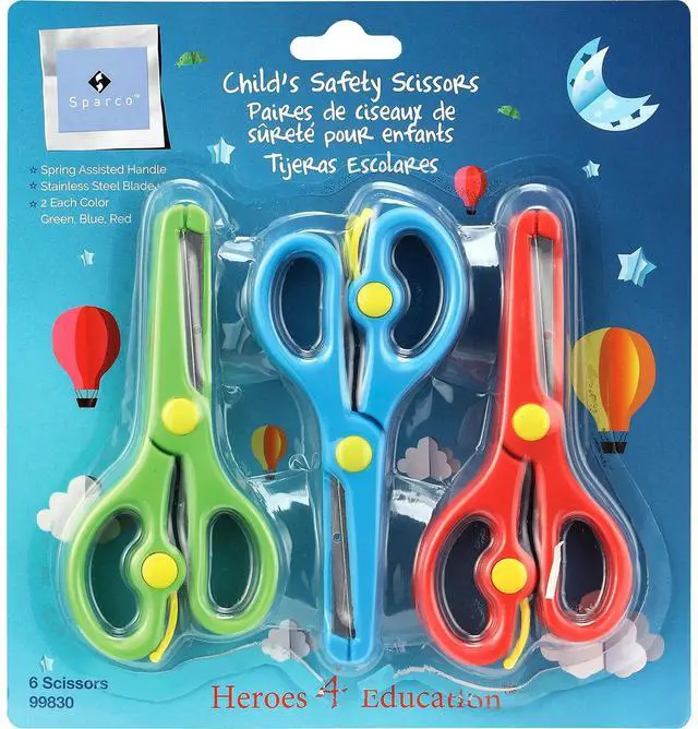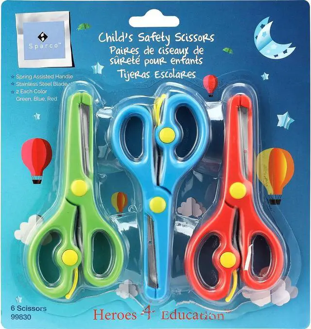 Help your students develop proper cutting skills and increase their confidence with these spring-assisted safety scissors. Blunt-tip- stainless steel blade protects childrens hands for safe use by young learners. Ambidextrous design provides great cutting control for both right-handed and left-handed users. Safety scissors set includes two scissors in green- blue and red.