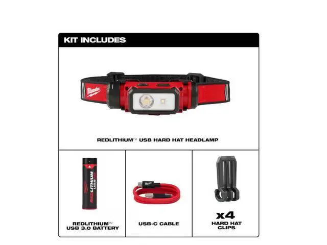 This headlamp is IP54 rated as weather and dust resistant and survives impacts from up to 2 meters to withstand harsh job site conditions. The REDLITHIUM USB Hard Hat Headlamp is powered by the REDLITHIUM USB 3.0AH Battery, providing all-day run-time, more recharges, and 3x faster charge time. The REDLITHIUM USB Battery can be recharged in the flashlight via USB - C or swapped out with additional REDLITHIUM USB Batteries for virtually no downtime. The REDLITHIUM USB Hard Hat Headlamp is covered by a limited lifetime warranty.