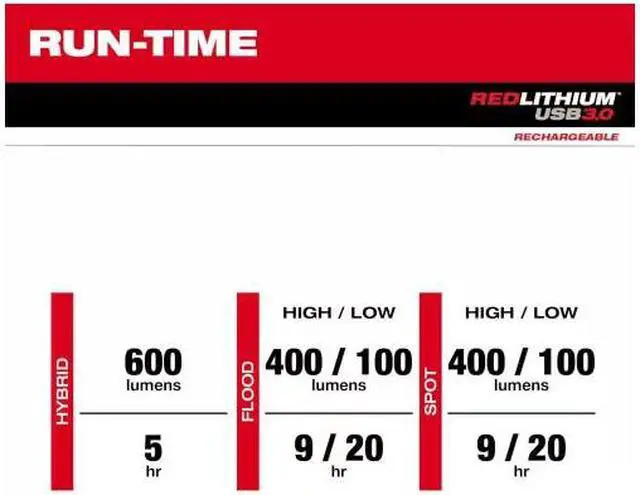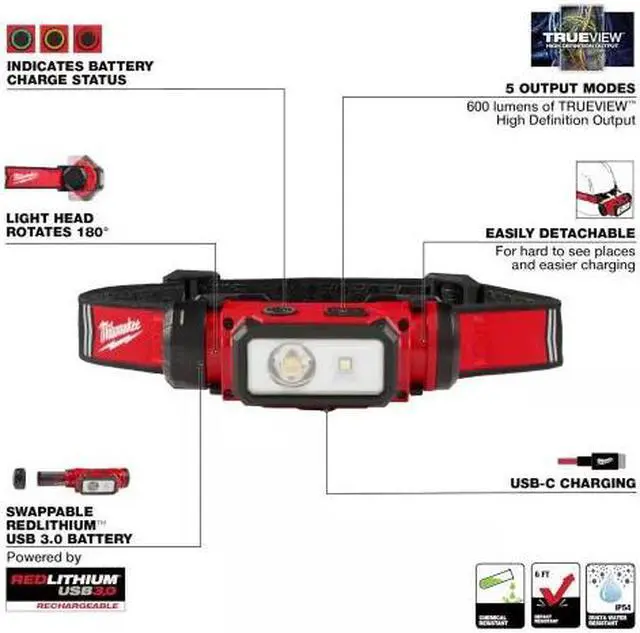 The Milwaukee REDLTHIUM USB Hard Hat Headlamp is 20% LIGHTER WEIGHT, BRIGHTER, and offers MORE RUNTIME. This high output, compact headlamp is all powered by the REDLITHIUM USB Battery. This rechargeable headlamp is a lightweight and compact design that delivers 600 lumens of TRUEVIEW HIGH-DEFINITION OUTPUT with hybrid, spot, and flood modes. The headlamp easily detaches from the bracket for easy charging and to help get light into those hard-to-reach places. You can now optimize the position of the light with 180 degrees of mobility and 5 different output modes.