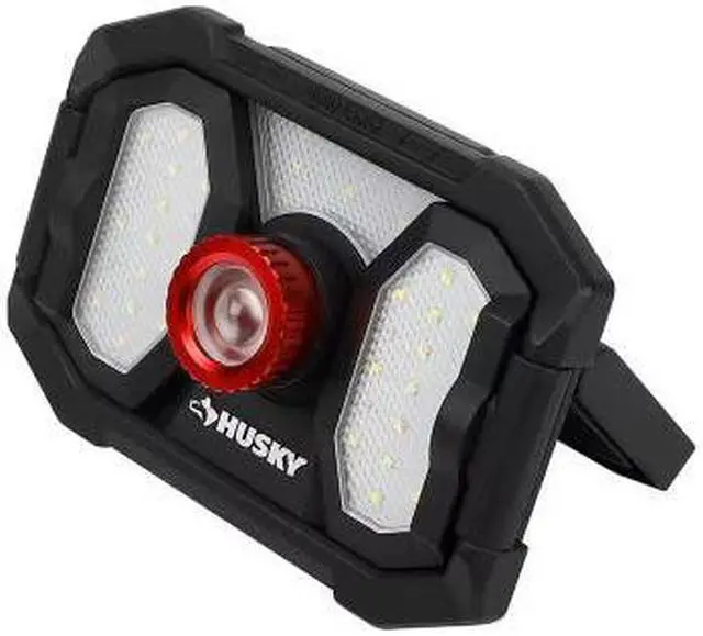 This Husky 2000-Lumens Rechargeable Utility light features a 2-panel Multi-Directional light. The 2 panels can rotate 270°, giving you a wider light angle for your projects. The middle spot light easily adjusts the focus from flood light to spot light. Features a 180° adjustable, foldable handle allowing you to position the light where needed while providing easy to carry convenience. Powered by (2) 2000mAh Rechargeable Lithium-ion batteries for a total 4000mAh. ECO mode for Extended long run time.