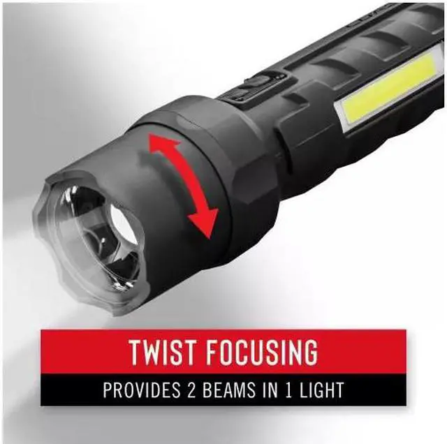 Pack versatile lighting wherever life goes-with an optional upgrade to rechargeable power. The stormproof, drop proof, and dust proof COAST PS700 features a magnetic tail cap for easy positioning and a twist-focusing main optic supported by two ultra-bright, handle-mounted COBs with solid and flashing modes in both white and red. Staying prepared, especially in wet environments, demands a utility flashlight that meets diverse circumstances with versatile power. With COAST's ALKALINE DUAL POWER system, the PS700 offers the convenience of alkaline batteries (4 X AA) and the cost efficiency of a COAST ZITHION-X rechargeable battery pack (sold separately) so you are never without your light.