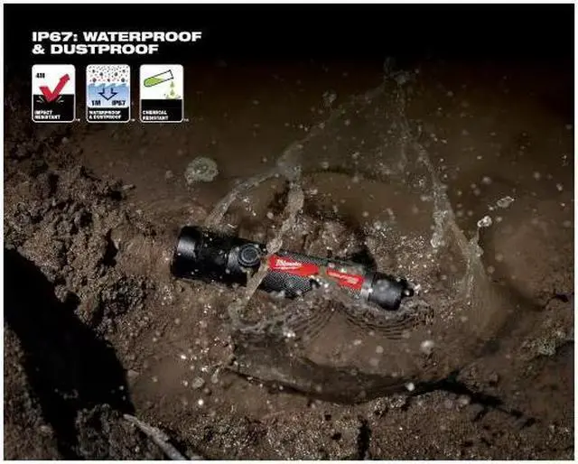 The multi-functional power button offers battery indication, mode selection, and mode memory intelligence, which powers up the flashlight in the last mode used. Maximize brightness or extend runtime with high and low mode options with up to 11 hours of runtime. This waterproof flashlight is built for the toughest conditions with an IP67 rating. It's rated for 4-meter drops and can withstand submersion up to 1-meter. The USB Rechargeable 800L Flashlight is powered by the REDLITHIUM USB 3.0AH Battery, providing all-day run-time, more recharges, and 3X faster charge time.