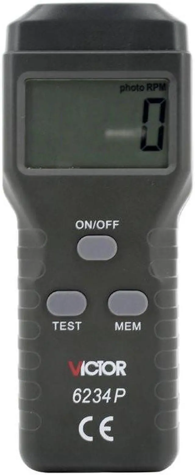 Model: VICTOR6234P Measuring range: 2.5 to 99999 rev / min Accuracy: 0.05% + 1 Resolution: Contact speed: 0.1 RPM Contact line speed: 0.01m / min Time base: 4MHz quartz crystal oscillator Display: 5-bit with a backlit LCD Maximum display: 40000 Power: 4 1.5V AA (UM-3) battery Overall dimensions: 157 64 31mm Weight: about 200g