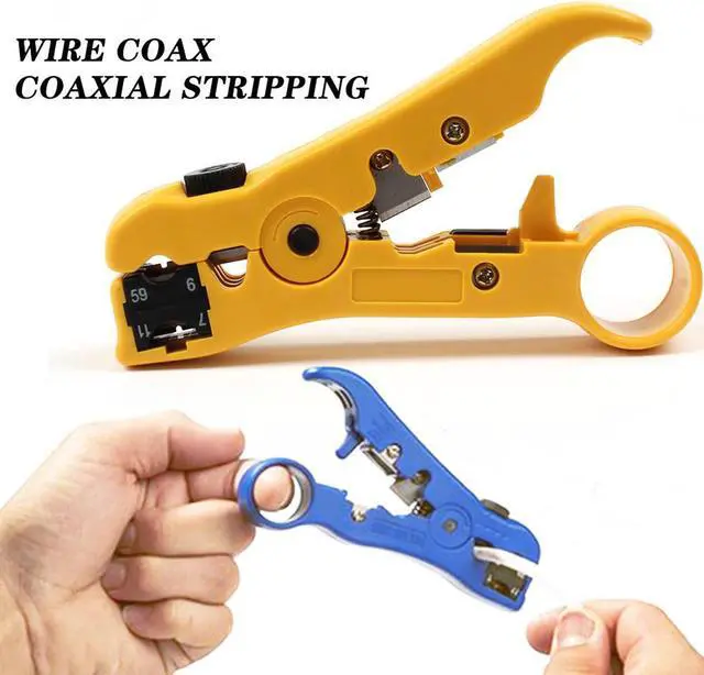 Wire Coax Coaxial Universal Cable Stripper Cutter Stripping Pliers Tool for Network rj45 Cables - Yellow