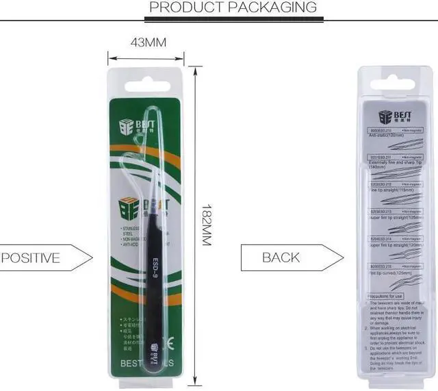 BST-9 Precision Tweezer Antistatic Tweezers Stainless Tweezers Model Pointed Brand Name: BES DIY Supplies: Electrical Model Number: BST-9 Material: Stainless Steel Type: Long Nose