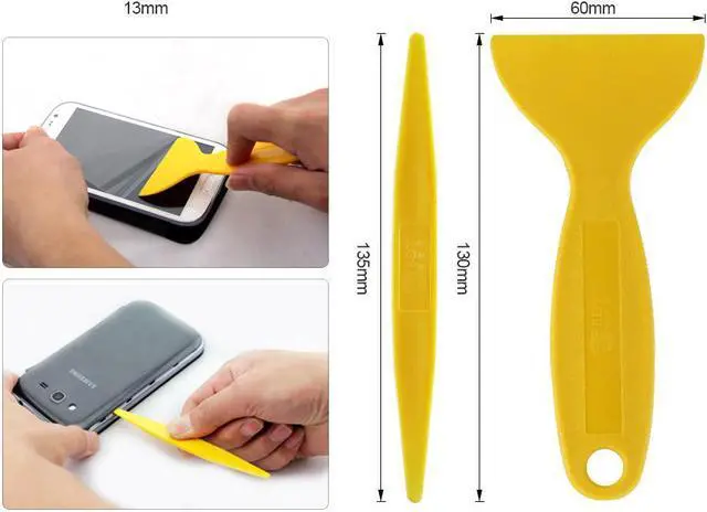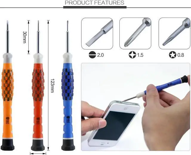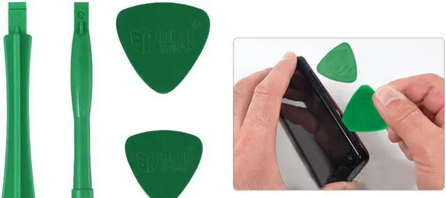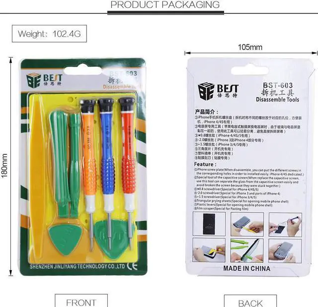 3pcs 886 screwdrivers 1pc Plastic graver 1pc Spudger for capacitive screen 2pc Plastic spudger 1pc Triangle guitar pick 1pc Little guitar pick 1pc screw hole distribution board for iphone 4 This mobile phone repair tool kit are specally designed for iPhone 3G,4G,5G. The spudger is hard enough to get the case opened, but soft enough not to crack or chip your case. Screw holes distribution board make you earily remember the position of screws. To smoothly finish your repairing work, you will need the right tool for the right job. You will receive product appearing exactly as how the picture shows.