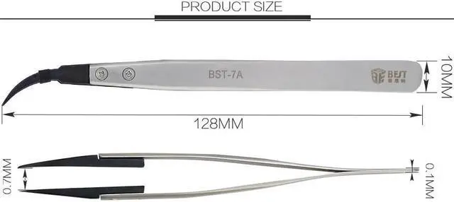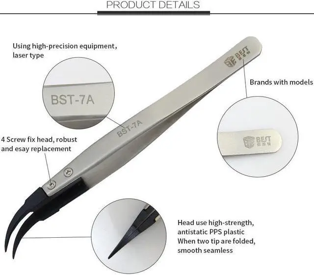 Material: Stainless steel handle+PPS ESD plastic head Magnetism: Non Length:125.6mm Weight:25g Strength: >HRC40(handle),high strength plastic (head) Head adopts ESD PPS plastic Side polished handle, feel comfortable, easy to use Suitable for PCB semiconductor, microelectronics, medical,beaty industry It is also bearable for acid, alkali and high temperature environment. Stainless steel handle Acid-proof, the anticorrosion, is not rusty Surface using very good special plating processing, smooth, use very comfortable.