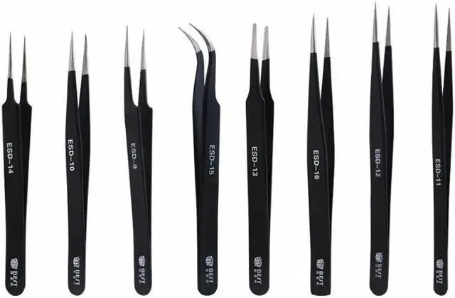 8pcs/lot BGA Precision ESD Tweezers Set Stainless Steel anti-static Tweezers Repair Tool Soldering Station Welding Assist
